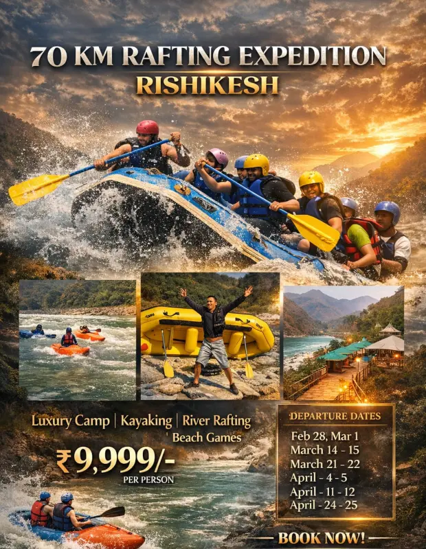 This multi-day rafting trip offers over 20 rapids ranging from playful Grade II to challenging Grade III–IV, surrounded by stunning Himalayan gorges, lush valleys, and untouched wilderness – far more remote and exhilarating than regular Rishikesh rafting stretches.