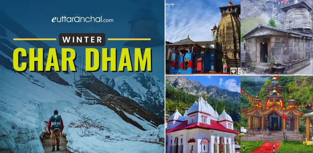 The Uttarakhand Tourism Department has decided to continue the Char Dham Yatra in the hills at the time of winters too. As the Char Dhams are covered under the snow during winter, all the Char Dham deities are worshiped at their nearby wintery sojourns namely Ukhimath, Joshimath (Pandukeshwar), Mukhba and Kharsali for the deities of Kedarnath, Badrinath, Gangotri and Yamunotri respectively.